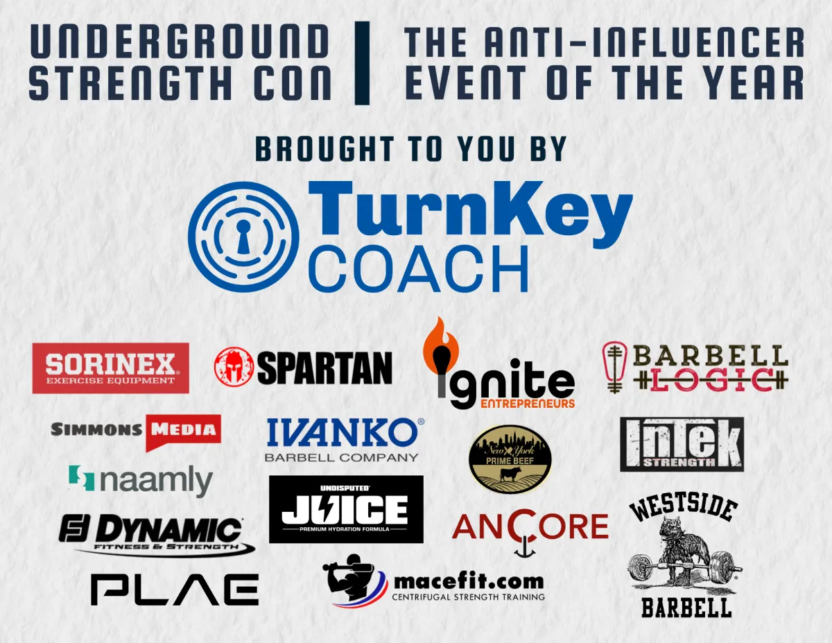 UNDERGROUND STRENGTH CON IS A ONE-OF-A-KIND STRENGTH EVENT. WE'VE INTENTIONALLY DESIGNED IT TO STAND APART FROM THE TYPICAL BLOATED WORKSHOPS AND UNINSPIRING CONFERENCES.